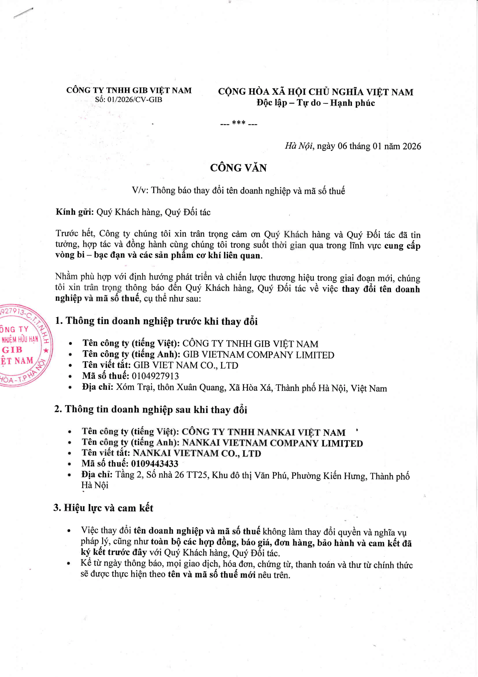 Chúng tôi xin trân trọng thông báo về việc thay đổi tên doanh nghiệp và mã số thuế nhằm phù hợp với chiến lược phát triển trong giai đoạn mới.