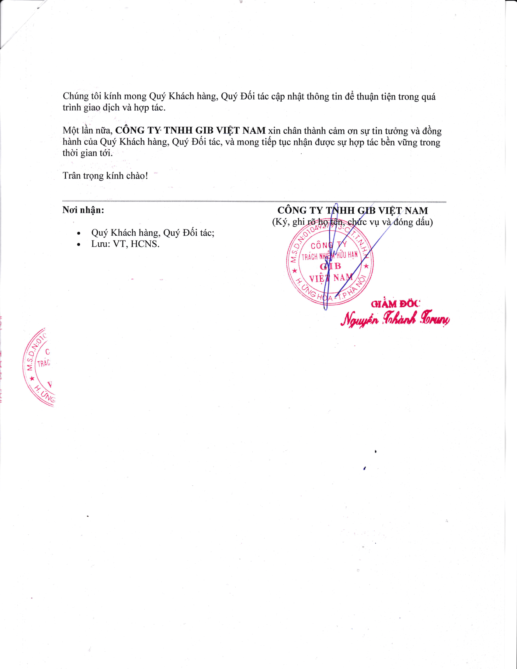Chúng tôi kính mong Quý Khách hàng và Quý Đối tác cập nhật thông tin để thuận tiện trong quá trình giao dịch và hợp tác.